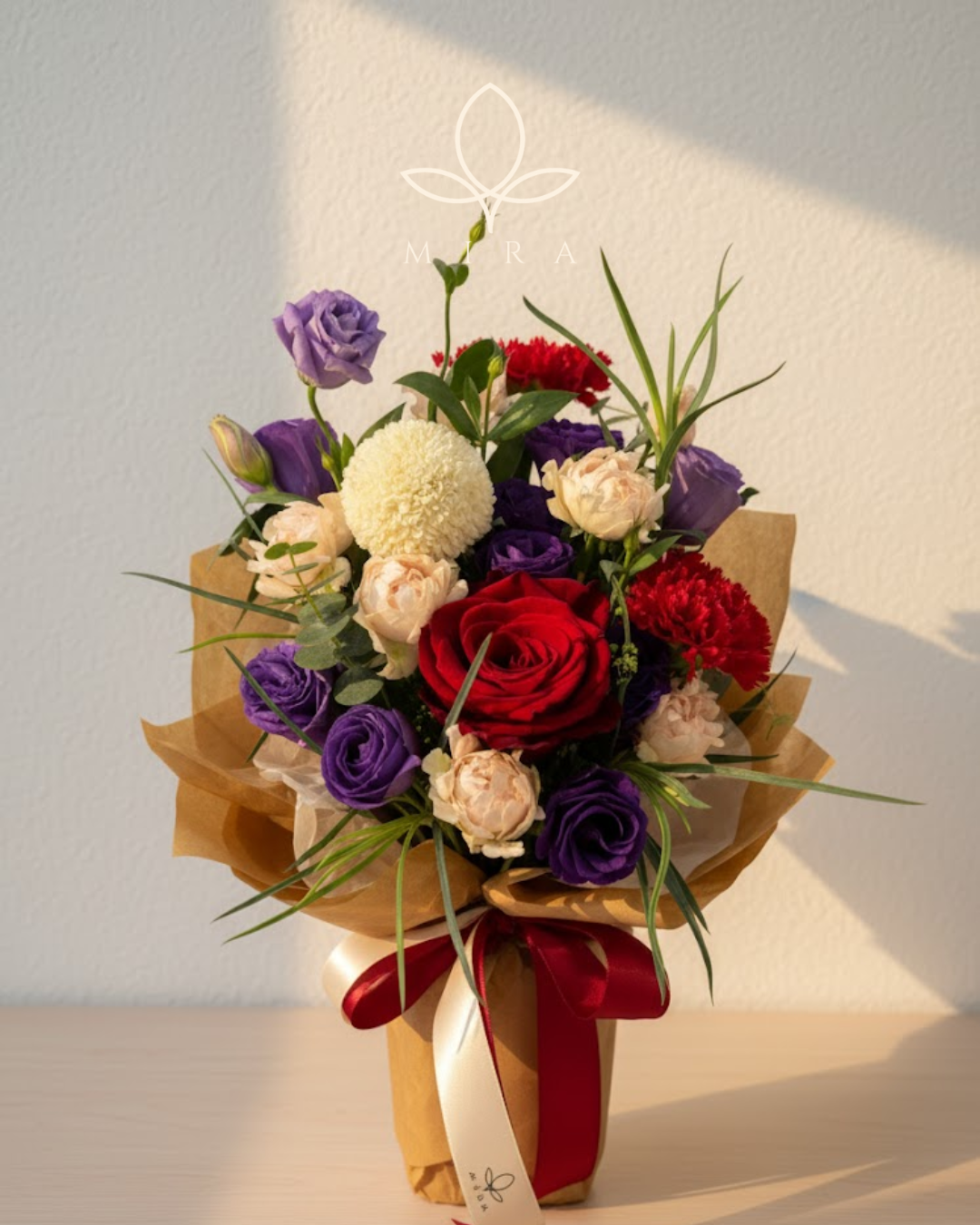 A mini bouquet with tender declaration of love through vibrant blooms and gentle composition.